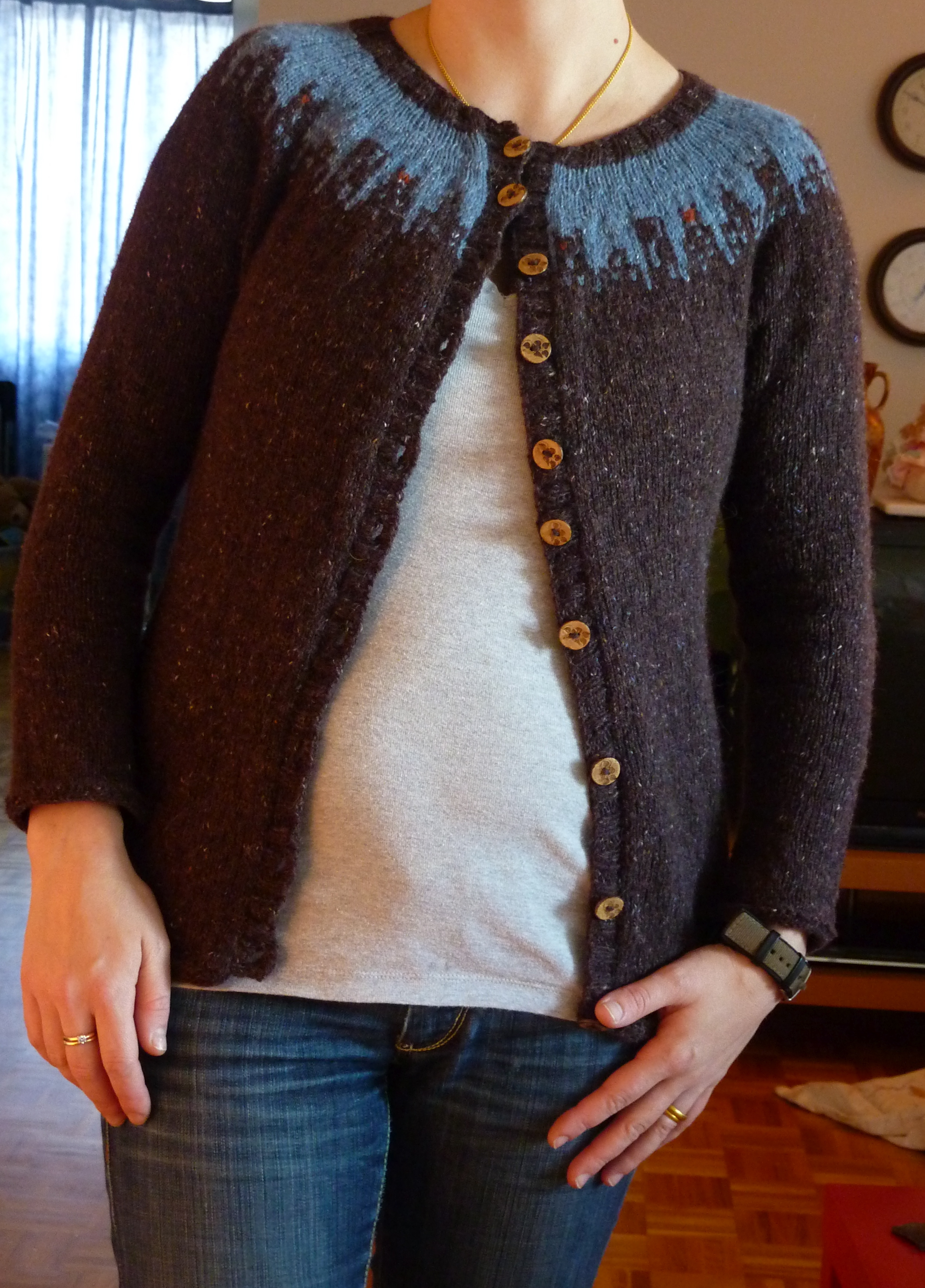 I’m really happy about the way it turned out, and the pattern for the sweater is incredible. It’s an amazing pattern for a generic cardigan, I could make this sweater over and over again, just changing the yoke patt to make it different from the last.
