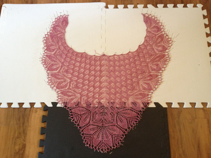 So this was my first time blocking a lace shawl, or a lace anything, or to be perfectly honest I have never used pins when blocking anything before. You could probably say that I have never actually blocked anything before. So here it is: