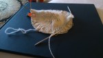 Almost no websites work for me, so I find myself being a lot more productive. For instance, writing this journal, and I got some knitting done. Since it’s 45 C here, I thought bringing the aran weight sweater I was working on a bad idea. I brought my evenstar shawl instead. I’m glad that I did. I just began chart 1 and I love the yarn, blue moon laci in ghillie dhu. I apologise for the dark photos, we had the tail end of a typhoon today, so little natural light and my flash is so horrible that if I had used it, the photo would be of a very brightly glowing white blob floating in space.