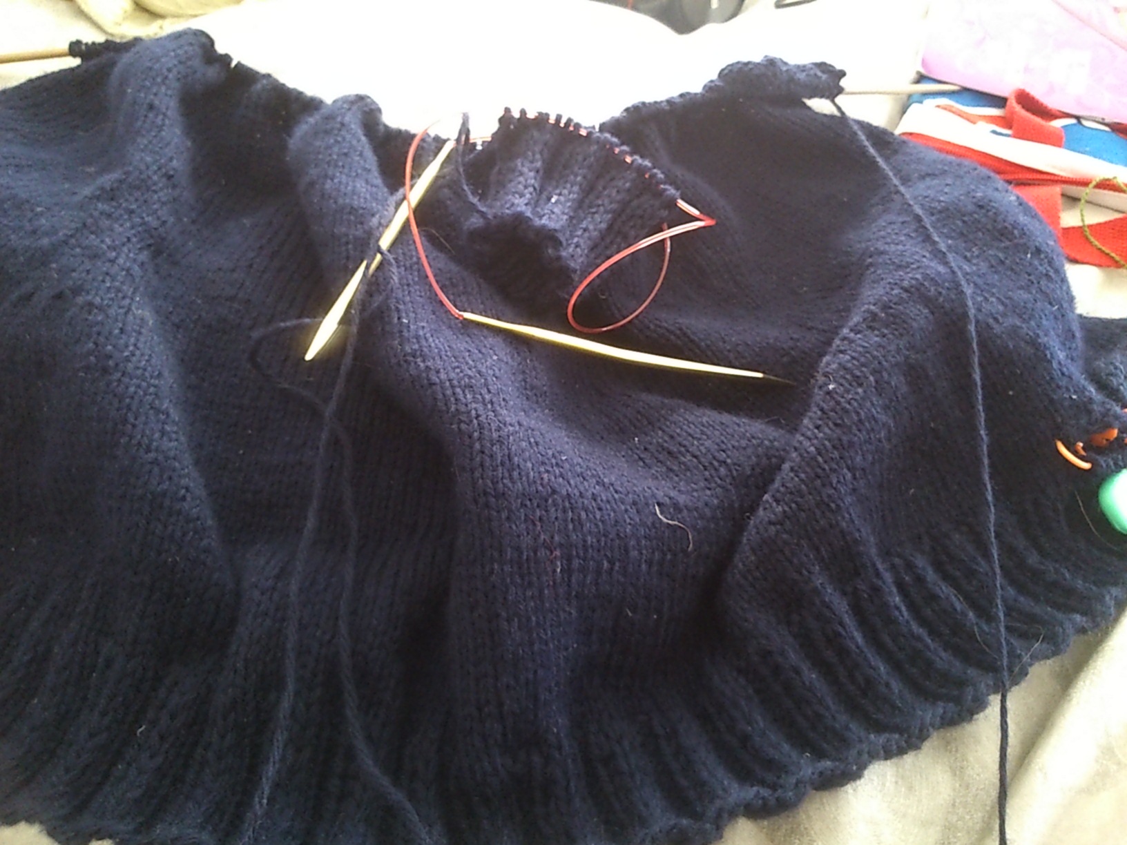 Lastly, I am still plugging away on my Shalder. I started the sleeves, it is great to work on at the end of the day.