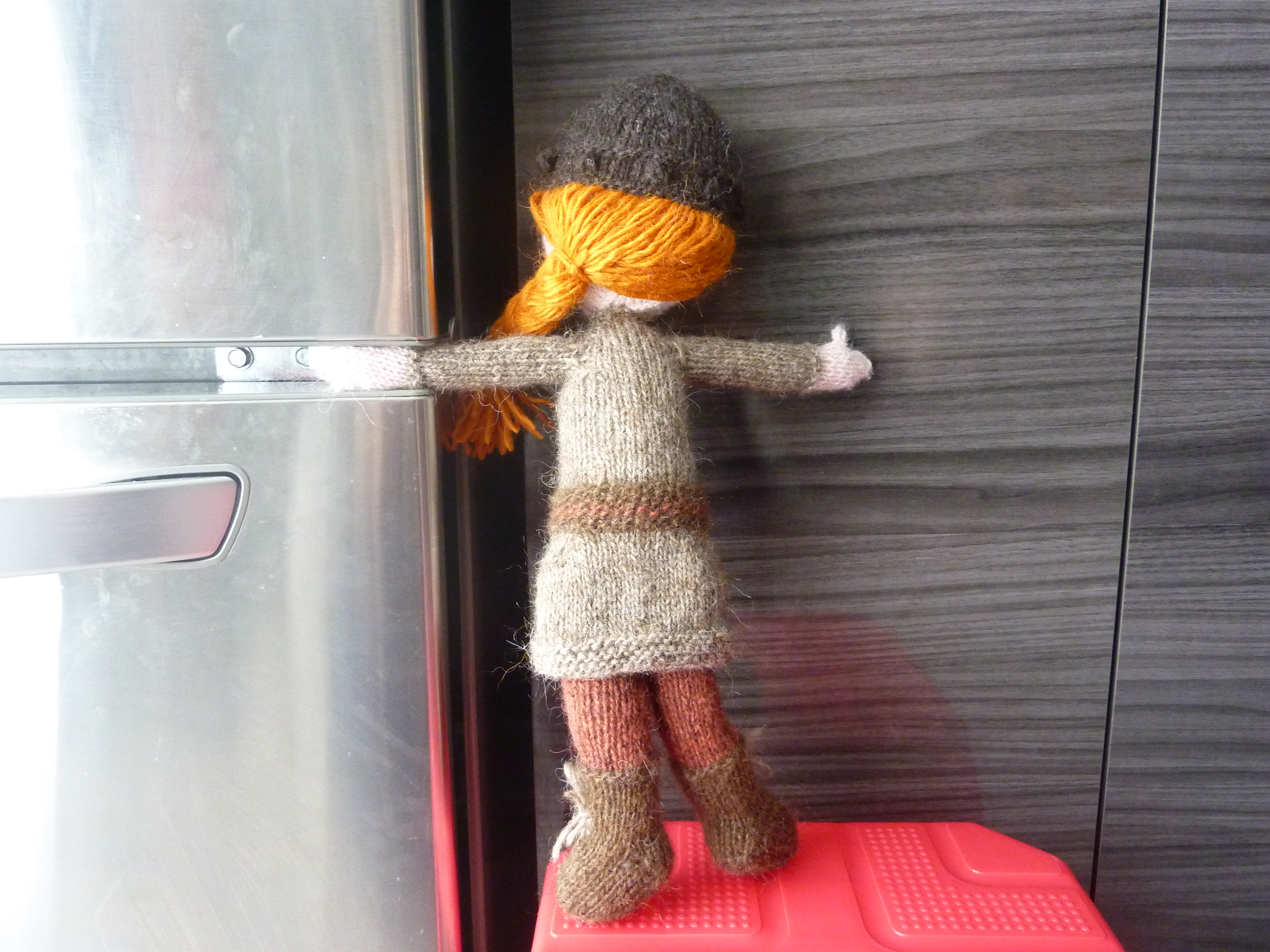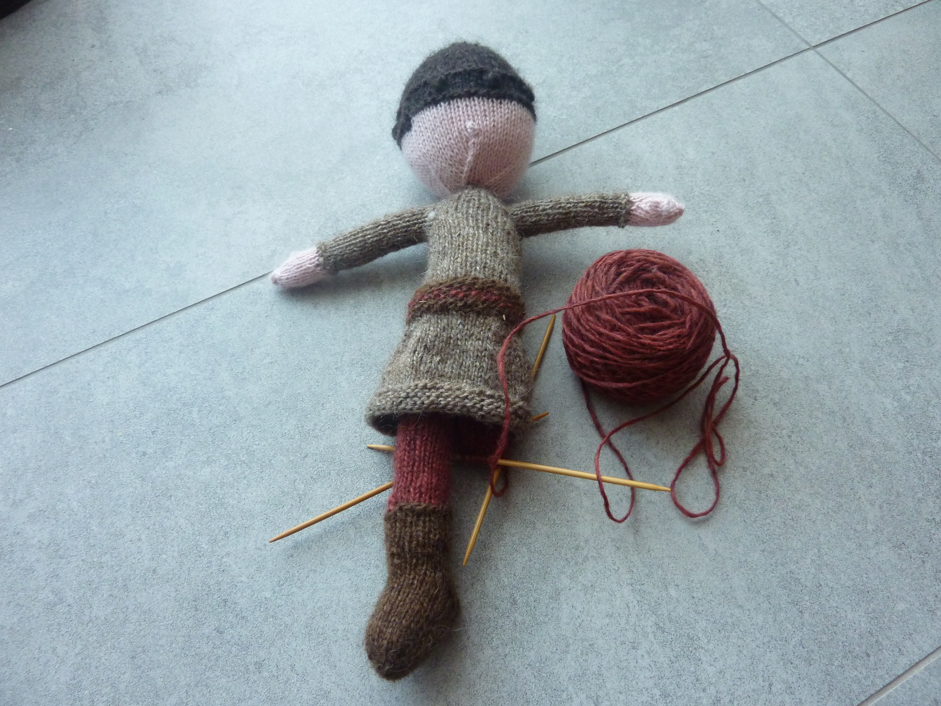 I’d been planning to knit this doll for years, but I didn’t work up the courage until now. I’d always assumed that stuffies would be an incredibly fiddly and time consuming knit. It was actually quite straight forward and fun. I tried to use Lett Lopi odds and ends I had lying around since it’s Icelandic yarn from Icelandic wool. The only non-Icelandic yarn I used is for her skin, since the only pale pink I had in my stash was some leftover Rowan yarn from baby knitting. I used DPNs for the whole project, which surprised me a little because I usually give up on them about 1/3 of the way through any given project. They are just too fiddly for me. I can’t even use them for hexipuffs. Maybe it was because I had the project on three DPNs, rather than four as for socks or two as for hexipuffs. For whatever reason, DPNs absolutely work for me when I make stuffies. I will definitely make more, as my daughter is only four and even my 9 year-old son has asked me for Finn and Jake from Adventure Time.
