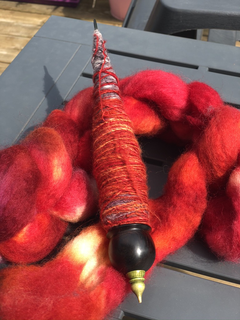 I have recently being learning how to spin. This is my third spin and my first on a supported spindle.