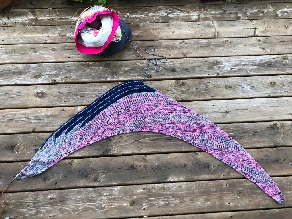 Mods: None that I’m aware of. I didn’t aggressively block the shawl, so the lace portion is not as open as it could be.